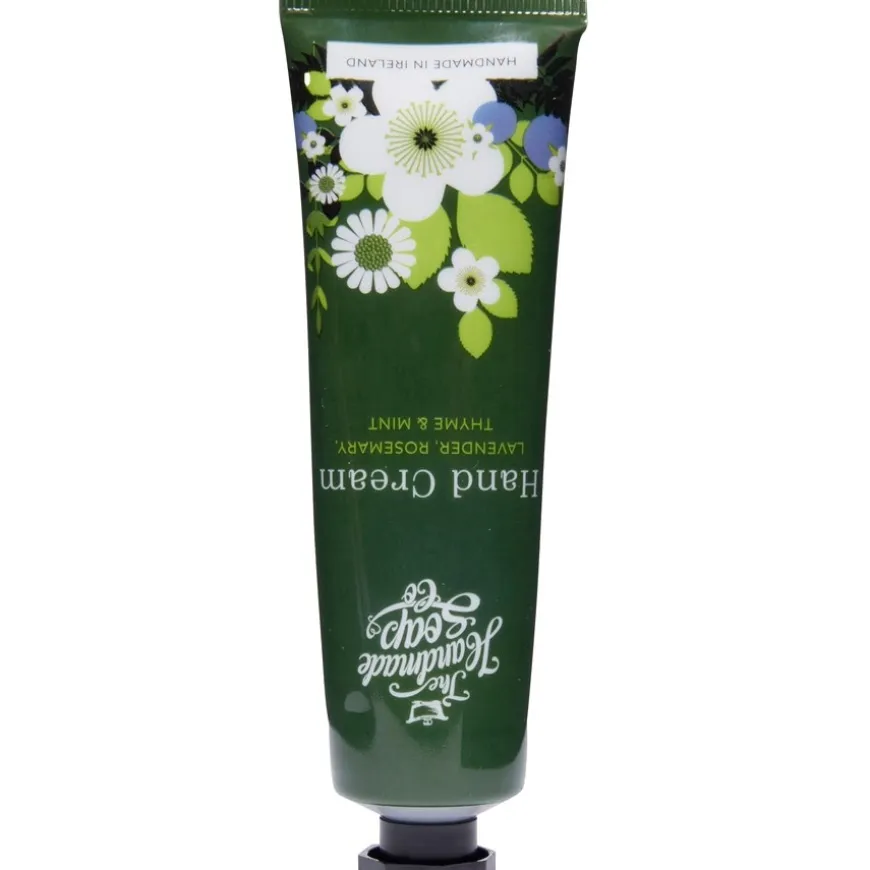 Informatie over de Lavendel & Rozemarijn Handcrème van The Handmade SoapDe Lavendel & Rozemarijn handcrème met zijn verleidelijke geur van essentiële oliën doet denken aan een Ierse tuin en is de ideale lichaamsverzorging voor de gestreste, vermoeide en droge huid. Lavendel heeft een kalmerende werking en wordt perfect gecombineerd met rozemarijn, een vleugje munt en tijm. De lichaamsverzorging wordt onmiddellijk opgenomen en laat geen resten achter. Het verwent en voedt je huid met geselecteerde ingrediënten en geeft haar een frisse, verzorgde uitstraling.Toepassing van het verzorgingsproductZodra je handen droog aanvoelen of een energieboost nodig hebben, breng je een kleine hoeveelheid van het verzorgingsproduct aan op de rug van je hand en masseer je het zachtjes in de huid. Besteed aandacht aan de ruimtes tussen je vingers en het nagelbed. Na een paar minuten is de crème volledig geabsorbeerd. Lavendel & Rozemarijn Handcrème kan gebruikt worden op alle huidtypes en is dermatologisch getest op huidverdraagzaamheid.De duurzaamheid van het Ierse merk The Handmade SoapDe natuurlijke lichaamsverzorgingsproducten van het merk The Handmade Soap zijn handgemaakt en vervaardigd zonder parabenen, SLS, synthetische toevoegingen of petrochemische stoffen. De productie is volledig geweldloos, veganistisch en gericht op duurzaamheid. Alle flessen zijn 100% gerecycled en de verpakking is gemaakt van FSC-gecertificeerd karton.