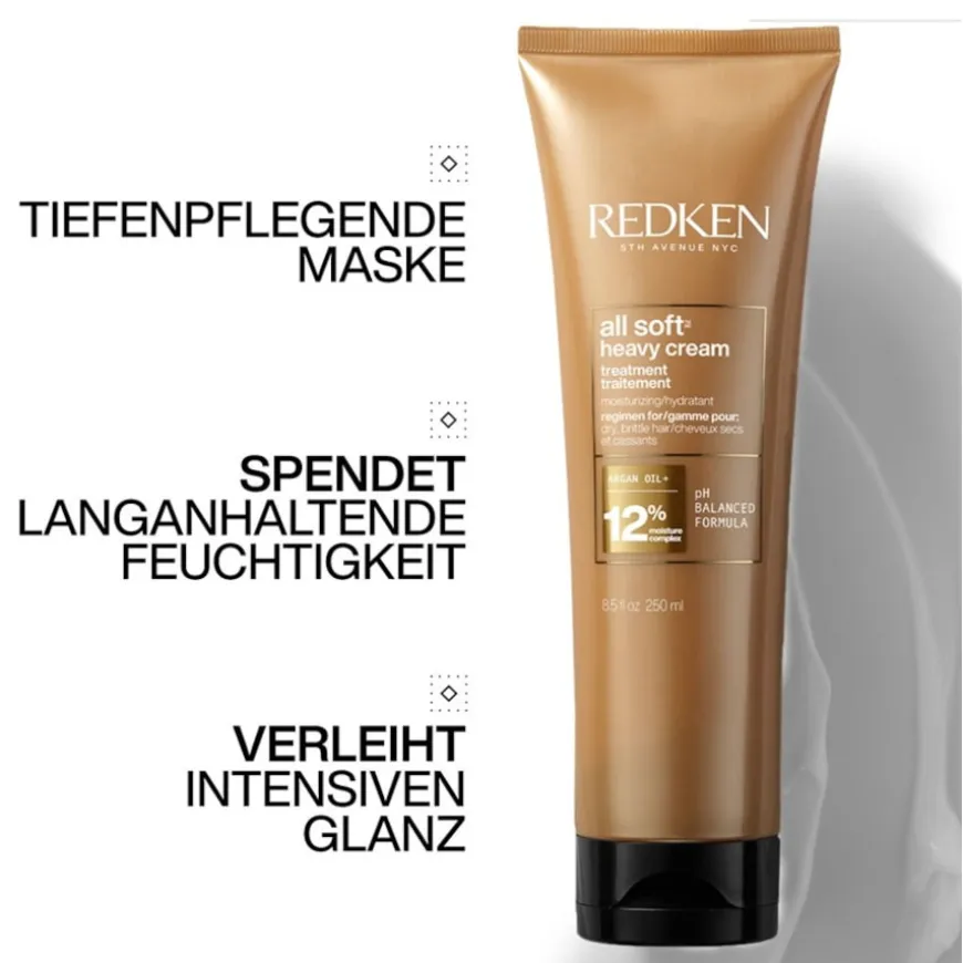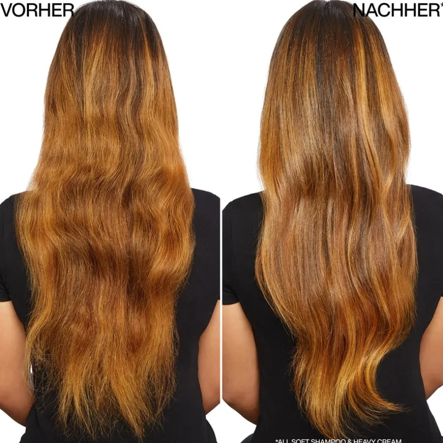 Het duurt maar een paar minuten om afscheid te nemen: breng na het wassen 15 tot 30 ml Redken All Soft Heavy Cream aan op handdoekdroog haar. Spoel het haar na 5 tot 15 minuten uit – geniet van het heerlijke gevoel van makkelijk handelbaar, soepel en intens glanzend haar.