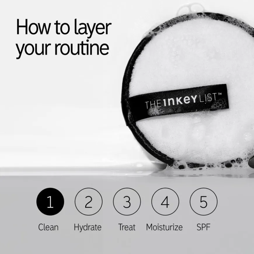 Als je The INKEY List Reusable Double-Sided Cleansing Pads van dichtbij bekijkt, zie je hoe innovatief ze zijn. Ze hebben twee kanten, een zwarte en een witte kant. De witte kant gebruik je voor huidverzorging door de huid zachtjes mechanisch te scrubben – tot drie keer per week. De zwarte kant is bedoeld voor reiniging en kan daarom worden gecombineerd met de reinigingsproducten en cleansers van de fabrikant. Bijzonder praktisch: door de aard van de zwarte zijde is deze zelfs in staat om zonnebrandcrème volledig te verwijderen – evenals restjes uit de omgeving. Dankzij de kleine lus ligt de pad altijd goed in de hand.