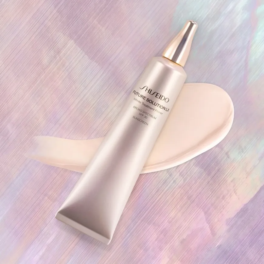 Een zorgvuldig voorbereide basis is de sleutel tot een egale teint. De Shiseido Future Solution LX Infinite Treatment Primer is ontwikkeld om de huid optimaal voor te bereiden op de make-up die volgt. De lichte textuur smelt zacht op de huid en laat een aangenaam gevoel achter. De primer kan helpen de zichtbaarheid van poriën en fijne lijntjes te verfijnen en creëert zo een gladder oppervlak voor foundation. Tegelijkertijd ondersteunt de formule de helderheid van de huid en geeft het haar een frisse uitstraling. Met een geïntegreerde beschermingsfactor van SPF 30 PA++ biedt het product ook bescherming tegen UV-stralen in het dagelijks leven. Het elegante, zilvergouden flesontwerp benadrukt het hoogwaardige karakter van de Future Solution LX lijn en maakt de primer een stijlvolle aanvulling op elke cosmeticacollectie.