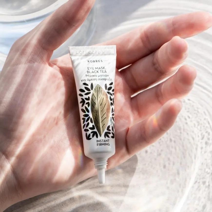 Het Cleansing Weekly Black Tea Instant Firming Eye Mask van Korres verstevigt direct de huid rond de ogen en geeft deze een frisse, uitgeruste uitstraling. Het hydrateert de huid en minimaliseert fijne lijntjes en rimpels dankzij de anti-aging eigenschappen. De formule is vrij van siliconen, parabenen, minerale olie en ethanolaminen. Breng een dekkende laag van het crèmige masker direct onder de ogen aan. Tien tot 15 minuten laten inwerken en daarna grondig afwassen. Gebruik het oogmasker een of twee keer per week en ervaar een zijdezachte, jeugdig vollere oogcontour!