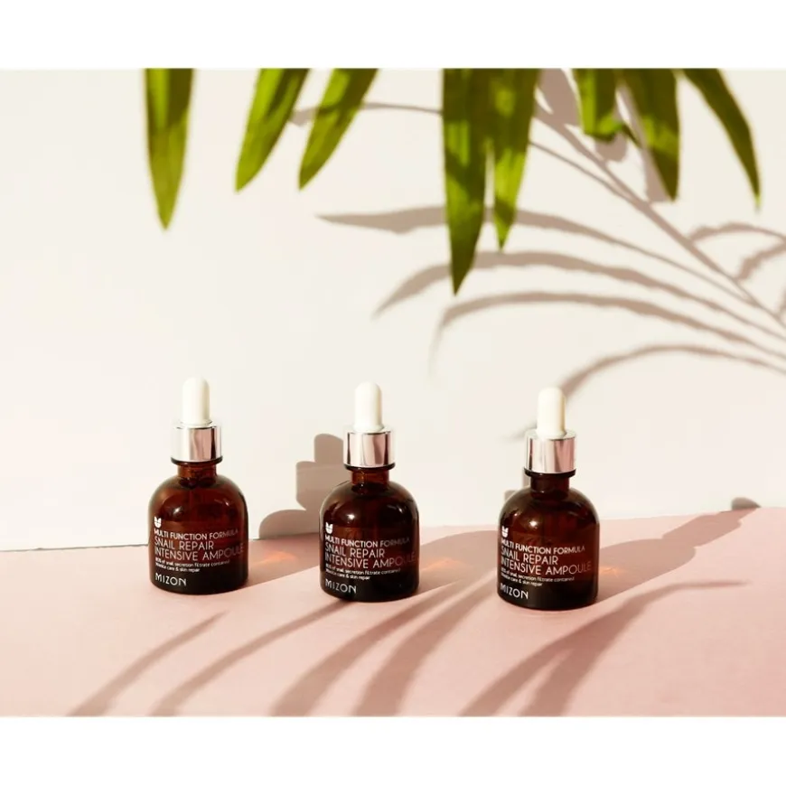 Mizon’s Intensive Ampoule is een van de serums die de huid voedt met slakkenslijmfiltraat. In de huidverzorging staat dit ingrediënt bekend om zijn verjongende, verstevigende en hydraterende werking. Het antiverouderingspreparaat vermindert rimpels in het gezicht en kan pigmentvlekken oplichten. Het resultaat na het aanbrengen is een stralende, jeugdige teint. Maar het serum kan nog meer: vijf verschillende vitamines en een reeks antiverouderingspeptiden dragen ook bij aan een gladdere, verzorgde gezichtshuid. Daarnaast kan Intensive Ampoule van Mizon helpen acne te voorkomen en bestaande acnelittekens te genezen.