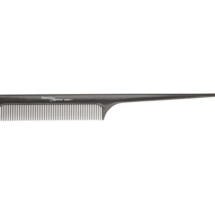 Dankzij de rechte, lange steel is dit model ideaal voor alle speld-, vlecht- en warrige kapsels. De kam is gemakkelijk en efficiënt te hanteren en de zacht afgeronde tanden zorgen ook voor een lichte massage van het haar en de hoofdhuid tijdens het stylen. Dankzij het stevige materiaal ligt de carbon kam comfortabel in de hand tijdens het stylen.De haarborstels en kammen van het Hercules Sägemann label worden geproduceerd door de New-York Hamburger Gummi-Waaren Compagnie (NYH), een bedrijf dat gespecialiseerd is in de productie van apparatuur voor kapsalons. De producten worden wereldwijd geëxporteerd.Je kunt de hoogwaardige haarborstels & kammen van het label hier bij Parfumdreams bestellen. Overtuig jezelf van de uitstekende kwaliteit en uitmuntendheid van de carbon kammen.