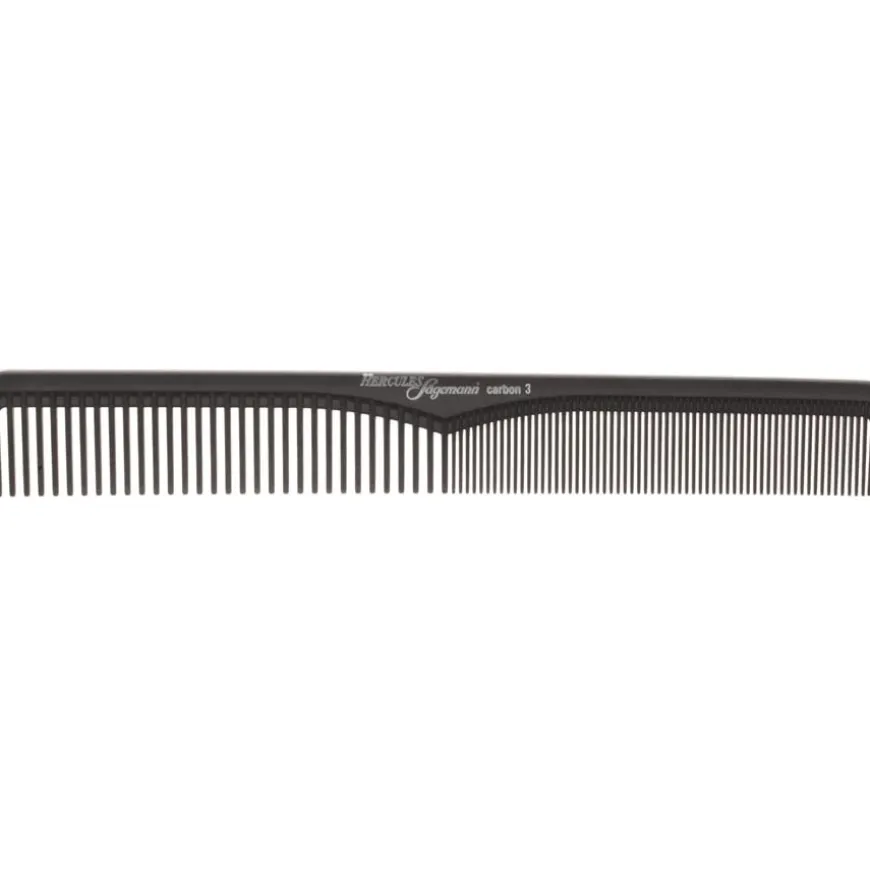 De elegant gevormde kam is uitgerust met een rij precies geplaatste tanden die zacht afgerond zijn aan de punt. Verdeeld in twee secties met verschillend gerangschikte tanden, kun je met de carbon kam flexibel en afzonderlijk het boven- en zijkant haar knippen. De kam is bovenaan voorzien van de naam van het Hercules Sägemann-label en het productnummer.De elegante haarborstels en kammen van het label worden geproduceerd door de New-York Hamburger Gummi-Waaren Compagnie (NYH) gevestigd in Hamburg. Het bedrijf is al meer dan 150 jaar actief op de markt en maakt zijn producten nog steeds met de hand. Professionals over de hele wereld waarderen de hoogwaardige carbon kammen en andere haarborstels en kammen van het bedrijf en gebruiken ze graag in hun dagelijkse werk.