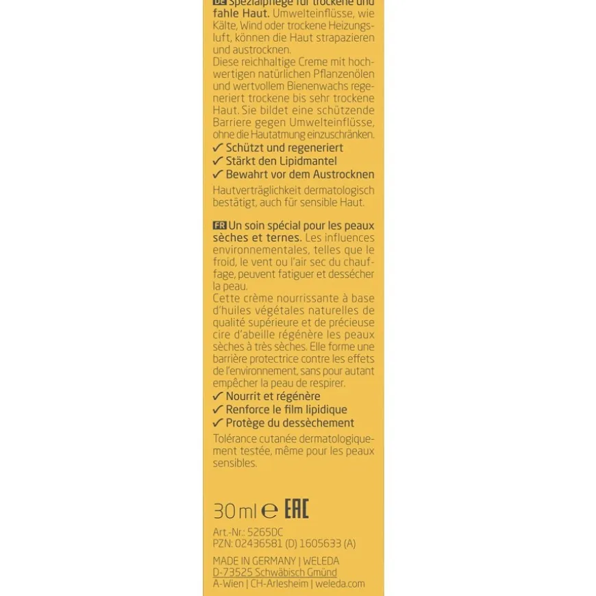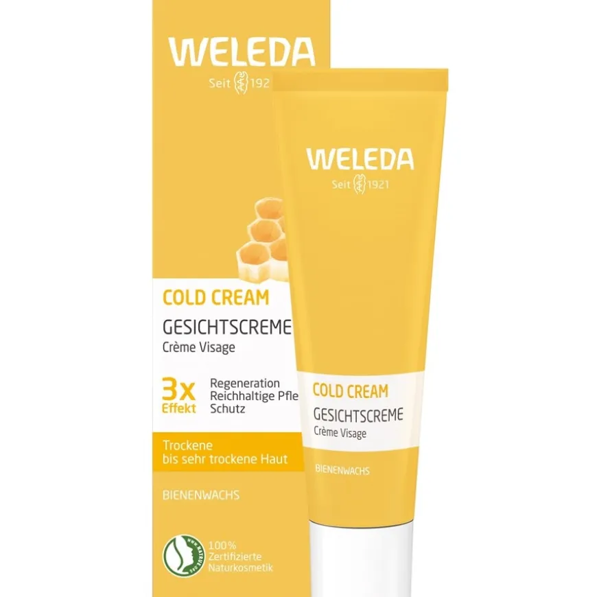 Coldcream van Weleda versterkt de lipidenlaag van de huid en beschermt het gezicht tegen uitdroging. Het vermindert een trekkerig gevoel en laat de droge tot zeer droge huid zacht en soepel aanvoelen. De dagverzorging wordt ’s ochtends spaarzaam aangebracht na het reinigen en tonifiëren van de huid. Het is niet bedoeld als bescherming tegen koude. Pak eventueel de watervrije Calendula Wind and Weather Balm als je je gezicht en handen wilt beschermen tegen de ijzige winterkou. Probeer ook de Weleda reinigingsproducten voor de droge tot zeer droge huid.
