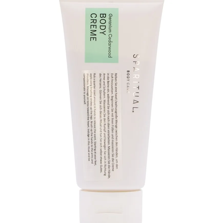 Sparitual Geranium Cederhout Bodycrème is gemaakt van hoogwaardige natuurlijke ingrediënten. De olie kan daarom loskomen van de rest van de textuur in de tube. Als dit gebeurt, masseer de tube dan zachtjes in zodat de afzonderlijke ingrediënten weer samenkomen. Verwarm het product in je handen voordat je het aanbrengt en masseer het zachtjes in de huid totdat het volledig is opgenomen.