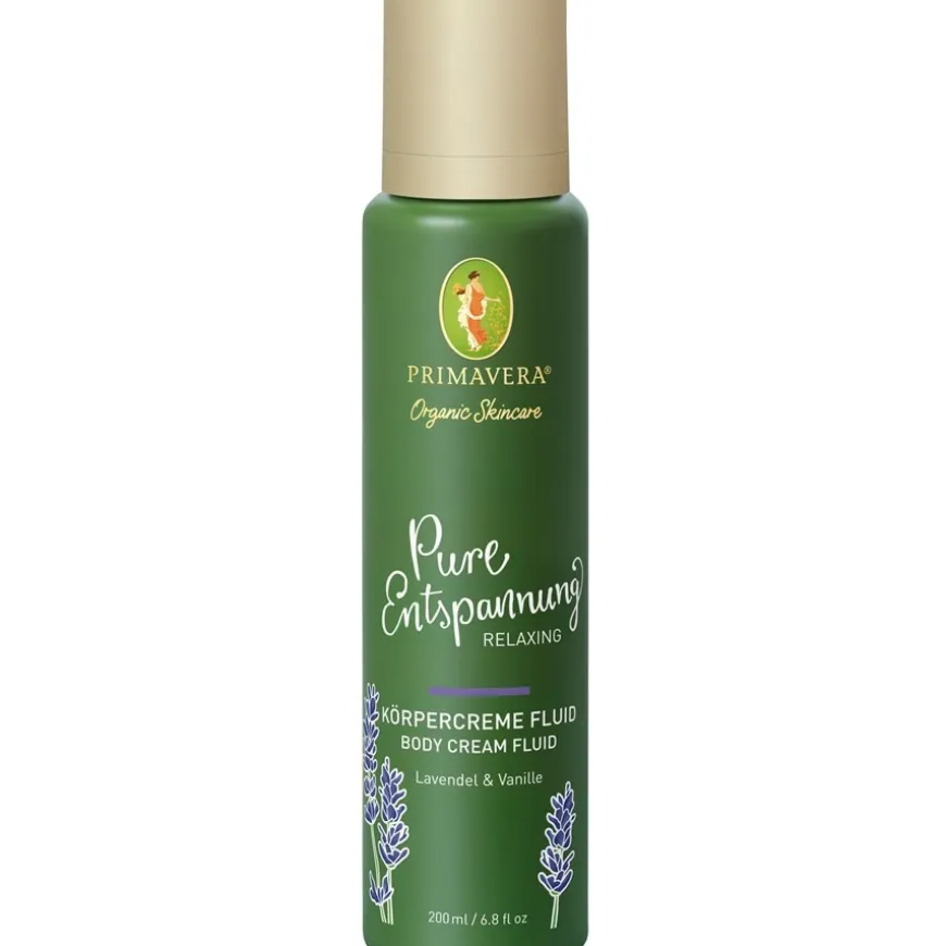 PRIMAVERA Pure Relaxation Body Cream Fluid voedt de huid intensief. Biologische abrikozenpitolie, die oliezuur, linolzuur en verzadigde vetzuren bevat, behoudt de elasticiteit van je huid en is heilzaam bij een gevoelige huid. Kendi-olie – verkregen uit de zaden van de kukui-boom – is ook goed voor de huid. Het bevat onverzadigde vetzuren zoals linolzuur en linoleenzuur. Biologische cupuacuboter voedt en verzacht de huid. De biologische lavendel in de huidverzorging heeft een kalmerend effect op de huid en zintuigen. Biologische vanille verwent en geeft een gevoel van welzijn met zijn warme geur.Breng de vegan Pure Relaxation Body Cream Fluid uit PRIMAVERA’s organische huidverzorgingslijn aan na een douche of bad met zachte masserende bewegingen. De water-in-olie emulsie heeft een lichte textuur en wordt snel geabsorbeerd. Het hydrateert je huid en verwent je zintuigen met een ontspannende geur.