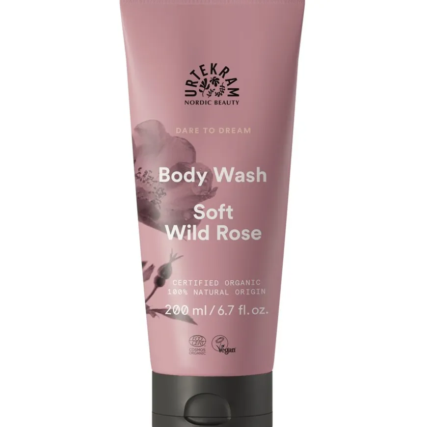 De Soft Wild Rose body wash van het merk Urtekram verwent de huid over de hele huid met een rijk verzorgingscomplex en betovert met een verleidelijke geur. De zeepvrije body wash reinigt mild met zijn huidvriendelijke formule op basis van kokossuiker oppervlakteactieve stoffen, die bijzonder zacht zijn voor de huid. Aloe vera van gecontroleerde biologische teelt hydrateert intensief en voorziet de huid van voedingsstoffen zoals vitaminen, mineralen, polysachariden, aminozuren en salicylzuur. Organische rozenbottelolie staat in de huidverzorging bekend om zijn gladmakende werking en bevat hoge concentraties onverzadigde omega-3 vetzuren. De body wash wordt afgerond met de onnavolgbare geur van wilde roos, die het lichaam streelt. De Soft Wild Rose Body Wash laat de huid fluweelzacht aanvoelen onder de douche en geeft een sensueel gevoel van welzijn.