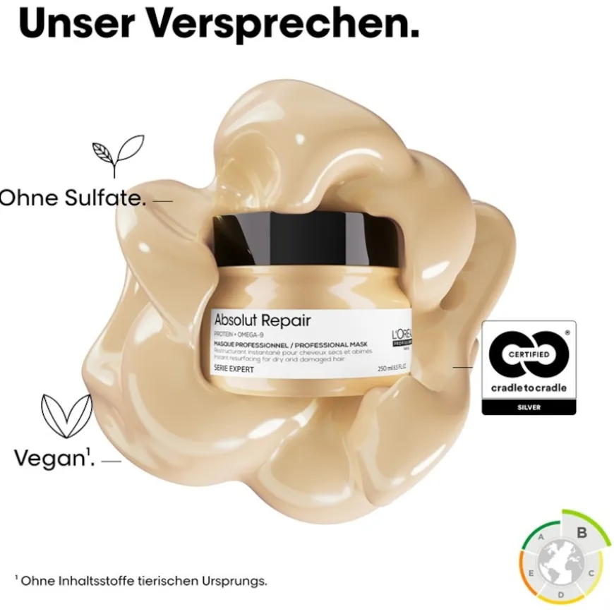 Het Absolut Repair Lipidium Reconstruction Masque van L’Oreal Professionnel wordt direct na het wassen aangebracht op handdoekdroog haar. Masseer een voldoende hoeveelheid in het haar en laat het product ongeveer twee tot drie minuten zitten voordat je het grondig uitspoelt. Het melkzuur in het masker dringt tijdens de behandeling diep door in het haar en maakt de schubbenlaag glad op een duurzame en natuurlijke manier. Het resultaat is versterkt haar en glamoureuze glans.
