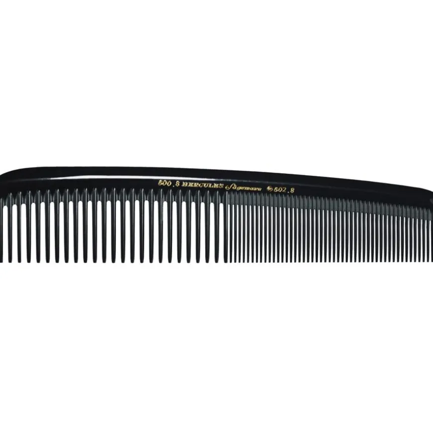 De Meisterstück kam is gemaakt van het fijnste eboniet, een materiaal dat verschillende positieve eigenschappen heeft. Eboniet is robuust en tegelijkertijd zeer flexibel. Het is ook antistatisch, waardoor het haar niet geladen raakt tijdens het kammen. De kam is uitgerust met een perfect gerangschikte rij tanden die zacht afgerond zijn aan de uiteinden. Het haar wordt zacht gemasseerd en gestimuleerd tijdens het kammen en stylen.De producten van het label Hercules Saegemann zijn afkomstig van de New-York Hamburger Gummi-Waaren Compagnie (NYH) in Hamburg, een fabrikant die gespecialiseerd is in de productie van goederen voor professionele kappers. Professionals over de hele wereld zijn enthousiast over de kammen en borstels van het label en bestellen ze keer op keer.U kunt Hercules Sägemann haarborstels en kammen hier kopen in de Parfumdreams shop. Overtuig uzelf van de uitstekende kwaliteit en uitmuntendheid van de kammen.