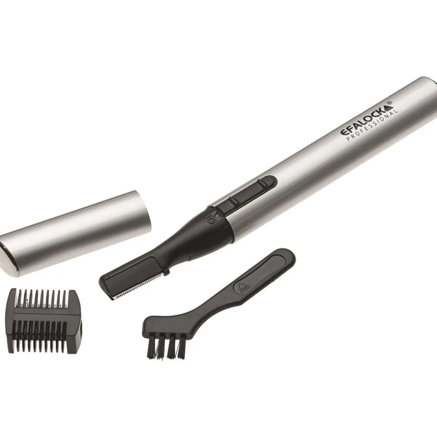 Scharen & trimmers van het merk Efalock vinden elk haartje. Dit geldt ook voor elektrische apparaten zoals de Microrazor uit de Professional lijn. Het is ideaal voor het verwijderen van gezichtshaar. Wenkbrauwen kunnen worden getrimd met het apparaat, dat wordt geleverd in een elegante zilveren kleur, net als baardcontouren. Natuurlijk is ook het verwijderen van haar bij het oor of de neus geen probleem. Haar in de oksels en andere lichaamsdelen waar een trimmer met groot formaat niet bij kan, kunnen ook gemakkelijk worden verwijderd. Een highlight: dankzij het kleine formaat past de trimmer in elke toilettas of cosmeticatas. De levering bevat ook een dubbelzijdige kam en een AAA-batterij.