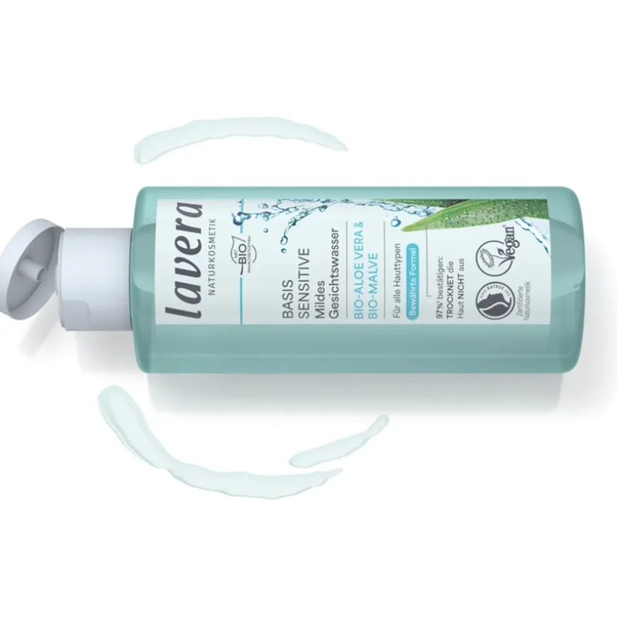 Geen compromissen met dit gezichtsverzorgingsproduct. Het huidverzorgingsproduct met biologisch afbreekbare formule is vriendelijk voor de huid en het milieu. Biologische aloë vera bevat talloze voedingsstoffen en staat bekend om zijn verzachtende, hydraterende werking. Waardevol biologisch malve verzacht irritaties en voorkomt nieuwe huidirritaties. De milde gezichtstoner van Lavera reinigt en zuivert de huid op milde wijze. Gebruik ’s ochtends en ’s avonds na het reinigen. Breng wat milde toner aan op een wattenschijfje en veeg zachtjes over de huid van gezicht, hals en decolleté.