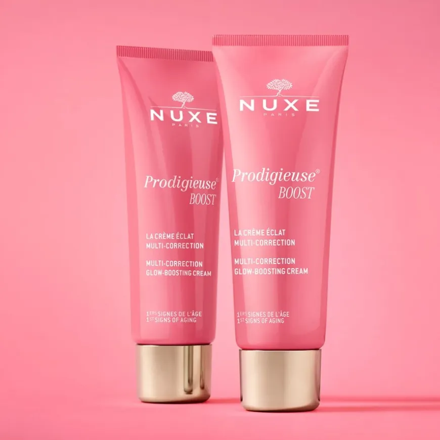 De Crème Prodigieuse Boost Multi-Correctie Zijdezachte Crème bevat zorgvuldig geselecteerde ingrediënten die de ruwe en gestreste huid haar natuurlijke balans teruggeven. Het is verrijkt met hyaluronzuur, macadamiaolie en jasmijnbloesem. Boost Multi-Correction Silky Cream van Nuxe is niet alleen verrukkelijk door de lichte, subtiel smeltende textuur, maar ook door de sprankelende geur, die doet denken aan wit hout en sappige lychees. Deze gezichtsverzorging wordt zowel ’s ochtends als ’s avonds op de gereinigde huid aangebracht. Indien gewenst kan het gecombineerd worden met een primerlotion.