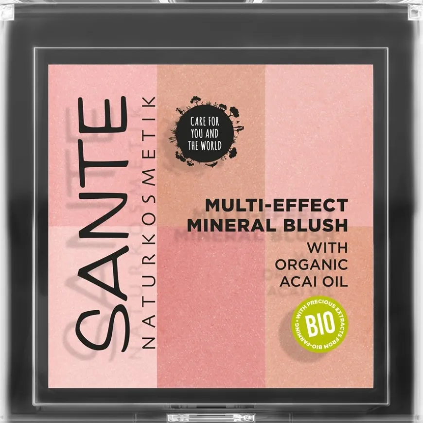 . De bessen voor de olie zijn afkomstig van gecontroleerde biologische teelt. Dankzij het hoge gehalte aan essentiële vetzuren is acaibessenolie zeer geschikt voor de droge en rijpere huid. Het actieve ingrediënt in de make-up vermindert de vorming van rimpels en herstelt bestaande huidbeschadigingen met behulp van antioxidanten.Hoe gebruik je de Rouge & Bronzer Multi-Effect Mineral Blush van Sante Naturkosmetik? Neem de textuur op met een kwast en verdeel de make-up met ronddraaiende bewegingen vanuit het midden van je wangen. Als de blush & bronzer op is, verwijder dan het etiket van het blikje en gooi het in de prullenbak of gele zak.