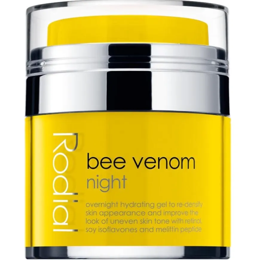 Rodial Bee Venom Night Facial Care is een krachtige anti-aging crème die je huid ’s nachts regenereert en revitaliseert. Het bevat een actief ingrediënt dat lijkt op bijengif, dat de bloedsomloop en celvernieuwing stimuleert en huidveroudering vertraagt. Tegelijkertijd verbeteren isoflavoniden uit sojabonen de elasticiteit van de huid, waardoor deze zacht en soepel wordt. Peptiden maken de huid van binnenuit voller en minimaliseren fijne lijntjes en rimpels – de teint ziet er gladder en verjongd uit en de huid is steviger en strakker.Rodial Bee Venom Night Facial Care heeft een lichtgewicht gelconsistentie en wordt ’s avonds na het reinigen in de huid gemasseerd. De huid is ’s nachts bijzonder goed in staat om actieve ingrediënten te verwerken, zodat je er ’s ochtends fris en verfrist uitziet. De vitamine C in het verzorgingsproduct voedt niet alleen de huid, maar verlicht ook kleuronregelmatigheden zoals pigment- of ouderdomsvlekken. De teint ziet er egaler uit en schijnt gelijkmatiger en roziger.