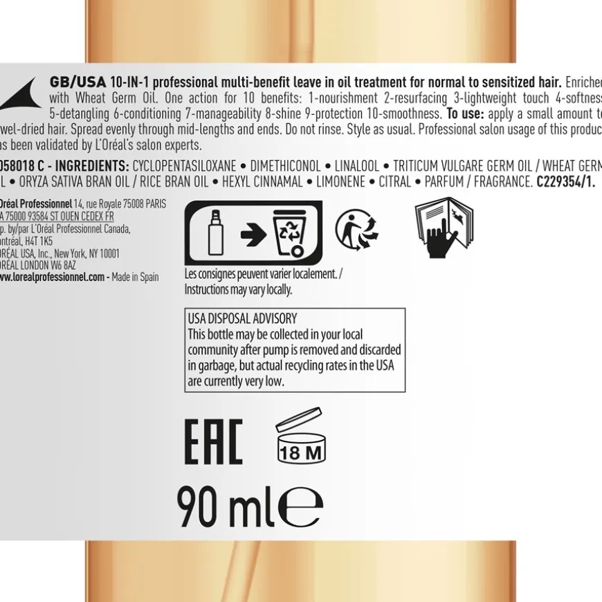 De L’Oréal Professionnel Paris Serie Expert Absolut Repair Oil is ontwikkeld voor droog en beschadigd haar. Het versterkt de haarvezel en geeft het haar nieuwe glans. De haarverzorging werkt specifiek op lengtes en punten.
