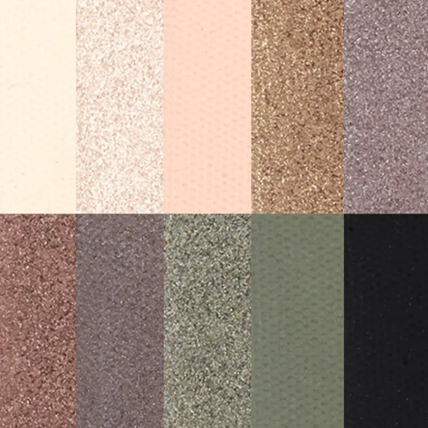 zijn opmerkelijk. Het oogschaduwpalet “Clin d’il n°1” bevat zowel matte als glanzende tinten, elk met hun eigen make-up effect:- Matte Ivory moet worden gebruikt als basis of in de binnenste ooghoek om de ogen groter te laten lijken.- Pink Champagne creëert interessante highlights dankzij het iriserende karakter- Matte Peachy Pink creëert een warme nude look- Pearly Bronze voegt drama toe aan je make-up met metallic reflecties- Pearly Desert Rose is de multifunctionele combinatiepartner voor alle andere tinten in het “Clin d’il n°1” oogschaduwpalet- Parelmoer Tiramisu definieert de buitenste ooghoek of creëert dramatische smokey eyes- Pearly Taupe is de beste oogschaduw & primer voor groene ogen- Pearly Khaki Grey is een groenachtig, iriserend leigrijs voor dramatische looks- Mat legergroen is perfect voor bruine ogen- Matzwart kan worden gebruikt als eyeliner en is de ultieme kleur voor smokey eyes