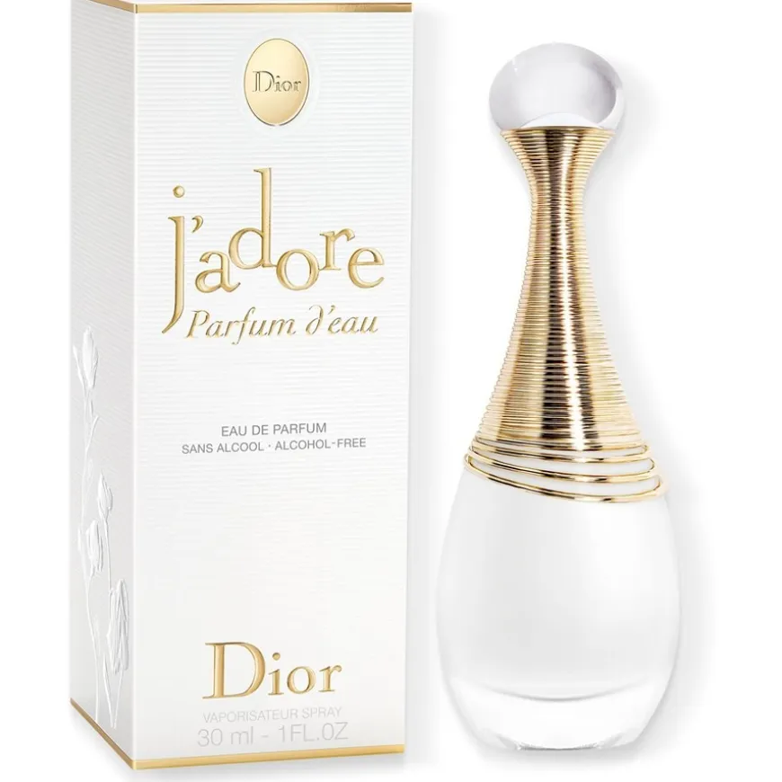 De formule van dit parfum in een mat opalescent wit flesje is de eerste in zijn soort bij Dior. Ook de manier van parfumeren is nieuw: J’adore Parfum d’eau wordt rijkelijk verstoven als een wolk die de huid omhult.
