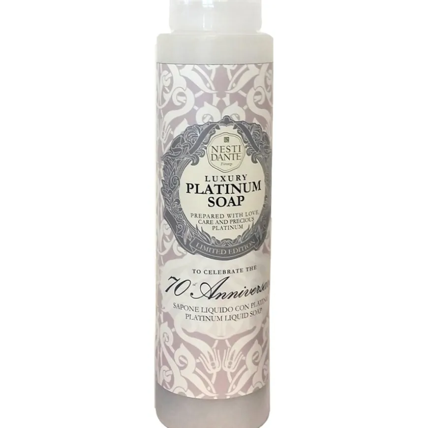 Sinds de oprichting heeft Nesti Dante Firenze zich gericht op hoogwaardige, natuurlijke ingrediënten. Alleen de beste ingrediënten worden gebruikt in de Luxury Platinum Shower Gel. Platina bestanddelen worden gebruikt om de transpiratie te reguleren. De heerlijke geur is gebaseerd op Florentijnse camelia, ook bekend als Camelia bella di Firenze, en witte jasmijn uit Toscane in Noordwest-Italië. De douchegel reinigt de huid op milde wijze en laat haar gladder en soepeler aanvoelen. De limited edition voor de zeventigste verjaardag van Nesti Dante Firenze bevat 300 ml wasgel in een witte fles bedrukt met een uitgebreid patroon in verschillende grijstinten. De Luxury Platinum Shower Gel voedt de huid en geeft haar een adembenemende geur.