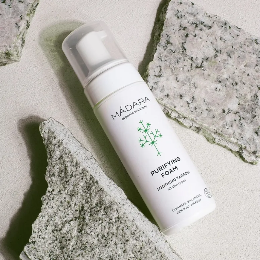 Als je elke dag make-up aanbrengt, dan weet je hoe belangrijk het is om geschikte reinigingscosmetica te gebruiken. Niet alleen make-up moet dagelijks worden verwijderd, maar ook alle restjes uit de lucht om een egale en frisse teint te behouden. De Purifying Foam is de ideale oplossing voor huidverzorging die voldoet aan de veeleisende omstandigheden van de moderne tijd. Met zijn milde combinatie van actieve ingrediënten gemaakt van duizendblad en kamille, reguleert dit schuim de gevoelige pH-waarde van de huid. Ontstekingen worden geremd en zelfs de vette of droge huid krijgt precies de verzorging die ze nodig heeft – van MÁDARA voor veeleisende cosmeticaliefhebbers!