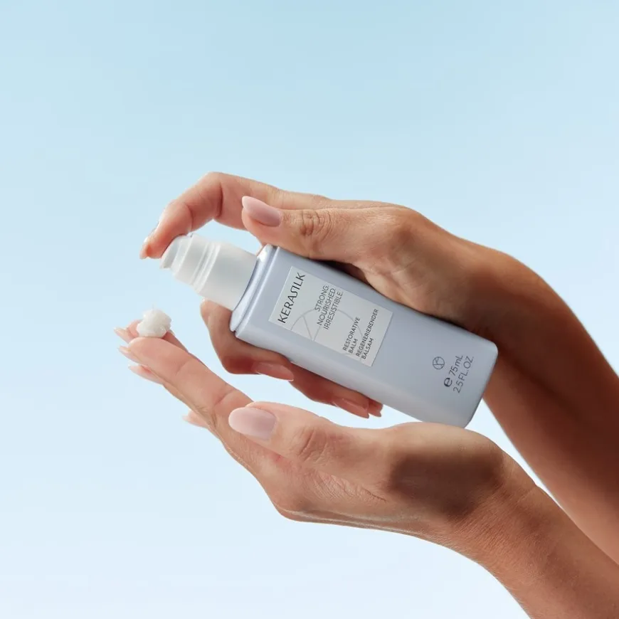 Breng het Specialists haarverzorgingsproduct aan op handdoekdroog haar na het wassen en verdeel gelijkmatig. Deze balsem van Kerasilk is een leave-in behandeling die in het haar blijft tot de volgende wasbeurt.