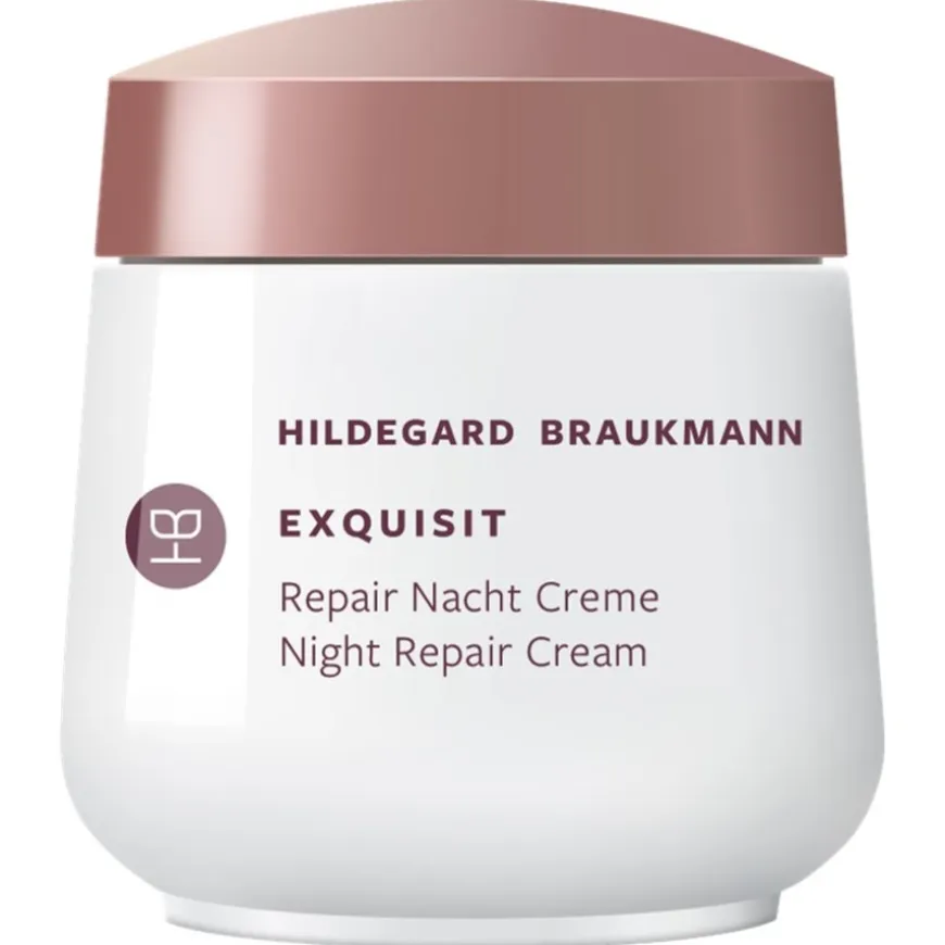 . Met zijn hoogwaardige herstelcomplex, dat bestaat uit organisch hyaluronzuur, vitamines en liposomen, is het ook een ideale anti-stressbehandeling. Dankzij de lichte consistentie wordt de gezichtsverzorgingscrème bijzonder snel in de huid opgenomen, verstrakt en verstevigt deze, vermindert fijne lijntjes en vult vochtreserves aan, wat direct zorgt voor een merkbaar zachtere huid. Hildegard Braukmann Exquisit Repair Night Cream maakt indruk met zijn uitstekende gezichtsverzorging: het bereidt, voedt en revitaliseert tegelijkertijd. De consistentie is heerlijk romig zodat hij perfect uitsmeert. Het is vrij van parabenen, microplastics, siliconen en paraffine. Dankzij de milde formule is de gezichtscrème bijzonder geschikt voor de gevoelige en normale huid vanaf 20 jaar. Breng de crème ’s avonds na het reinigen aan op je gezicht, hals en decolleté en geniet van het ontspannende effect en de aangename geur.
