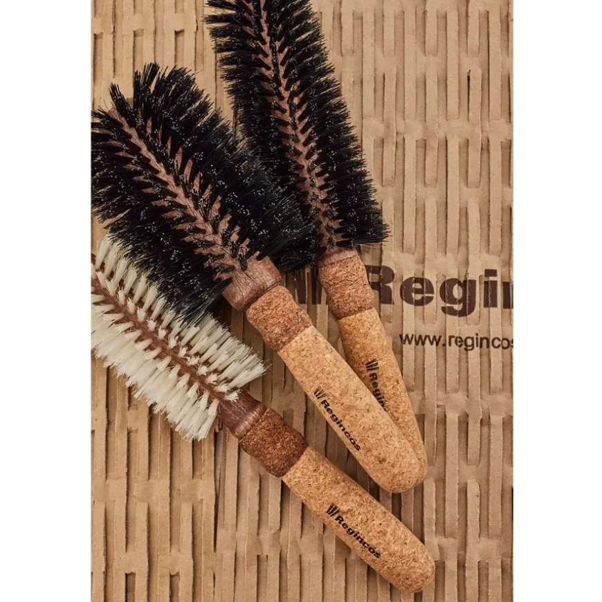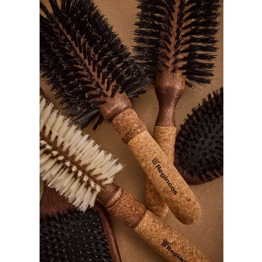 Het aanbod aan borstels is groot en de keuze is niet altijd gemakkelijk. Waarom zou je dan kiezen voor de ronde borstel Largo Ø 19/55 mm van Regincós? Als je de borstel voor het eerst oppakt en het lichte, tweekleurige handvat van kurk voelt, merk je meteen dat hij niet alleen lekker in de hand ligt, maar ook heel licht is. Bij het kammen valt op dat het haar niet statisch geladen wordt, maar meteen in de gewenste positie valt. De borstelharen zijn ook het vermelden waard. De meeste zijn gemaakt van everzwijnhaar, de rest is nylon versterkt met koolstofvezels. Dit maakt ze niet alleen duurzaam, maar geeft het haar ook een silky glans.Het schoonmaken van de Largo Ø 19/55 mm ronde borstel van Regincós is nauwelijks het vermelden waard, want je hoeft hem alleen maar af te nemen met een vochtige doek of onder de kraan te houden.
