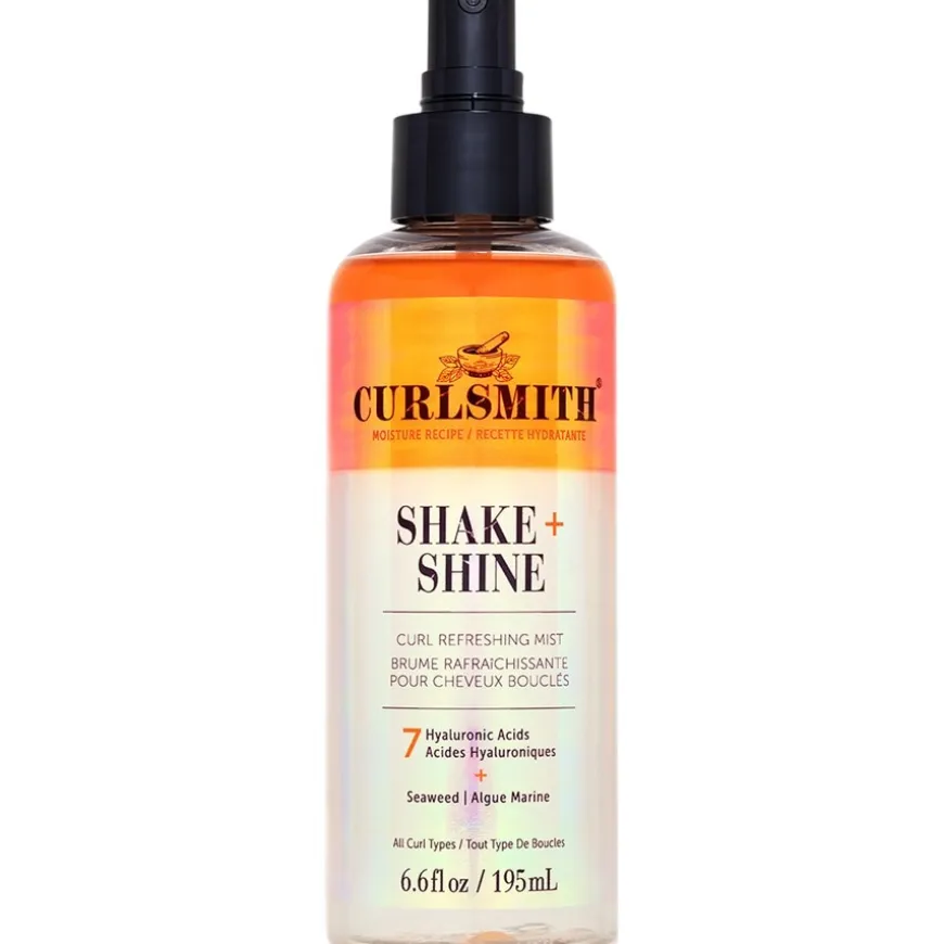 Shake + Shine Curl Refreshing Mist van Curlsmith is een zeer fijne en lichte mist die je krullen verfrist na het stylen en vocht vasthoudt in de vezel. Gebaseerd op tests levert het tot 41 procent meer vocht en is verrijkt met zeven soorten hyaluronzuur. Deze hebben verschillende molecuulgewichten en staan erom bekend dat ze kroes onder controle houden, de gladheid verbeteren en de hydratatie van de vezel behouden. Daarnaast bevat de luxe haarstyling waardevol zeewier. Deze kunnen je krullen direct verfrissen en effectief reactiveren: voor prachtige en langdurige resultaten. Shake + Shine Curl Refreshing Mist is geschikt voor het stylen van alle krultexturen en -types.