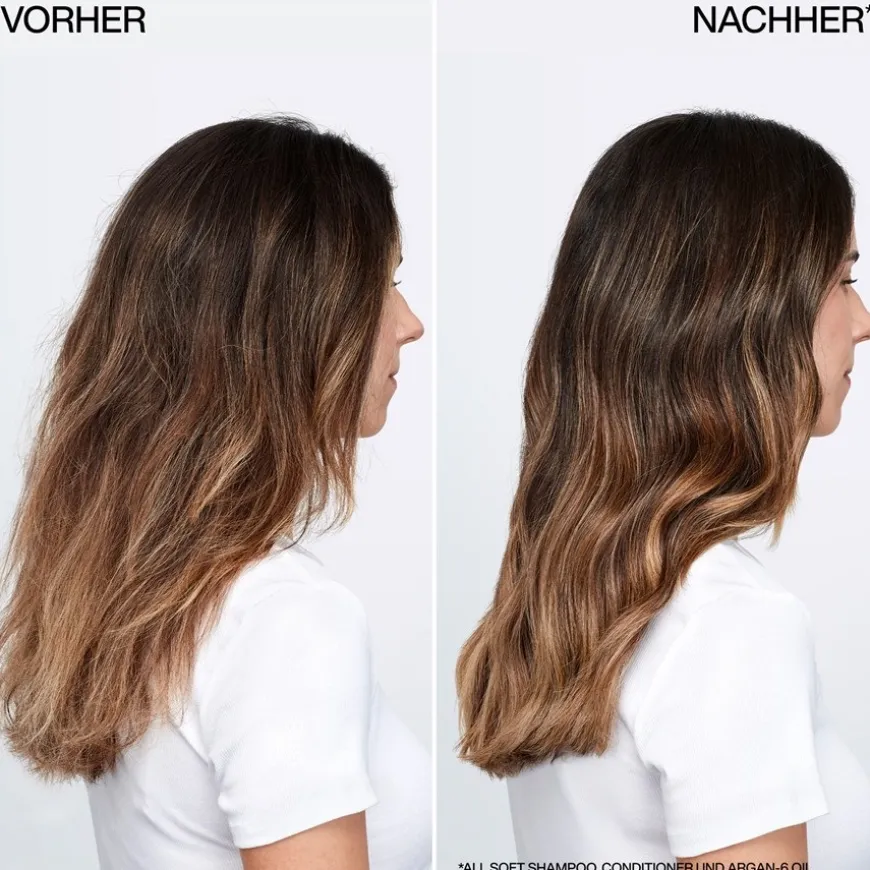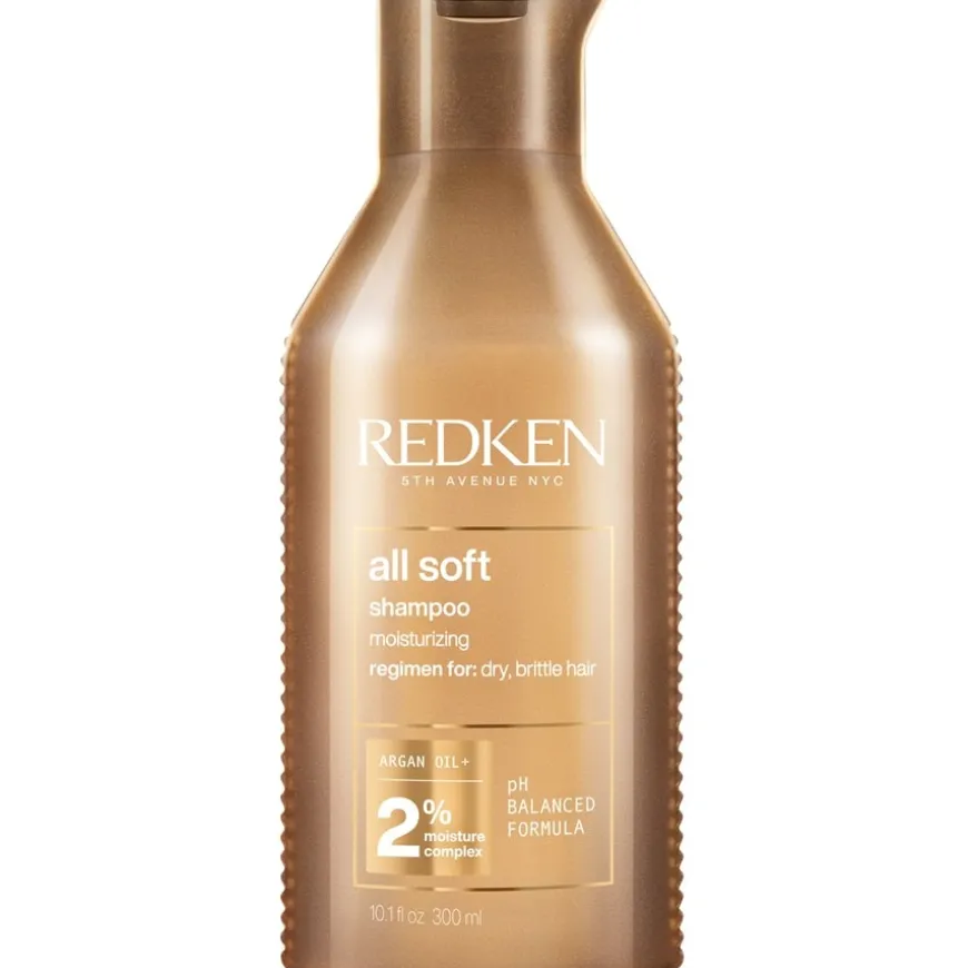 die breekbaar haar transformeert in zacht haar. Dankzij de rijke formule met verschillende oliën krijgt het haar een intense glans en goede doorkambaarheid De shampoo bevat glansversterkende camelina-olie, hydraterende arganolie en voedende olijfolie, die het haar meer souplesse geven. De cleanser is ook verrijkt met zijdezachte aminozuren, PCA en arginine. Terwijl de aminozuren proteïneverlies compenseren, hebben arginine en PCA een hydraterend en regenererend effect en geven ze het haar meer souplesse.De shampoo wordt op vochtig haar aangebracht, ingemasseerd en zorgvuldig uitgespoeld. Om je haar nog gladder te maken, moet je volgen met de All Soft Conditioner van Redken.