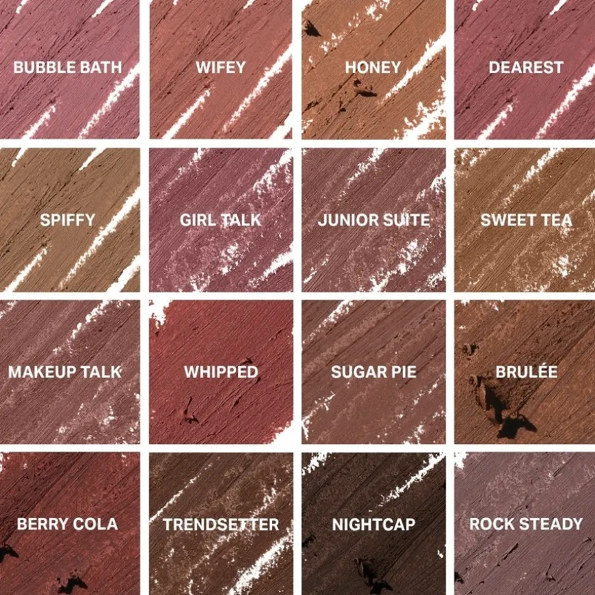 SPIFFY, MAKEUP TALK, SWEET TEA, SUGAR PIE, TRENDSETTER: Dimethicone, Kaolin, Caprylic/Capric Triglyceride, Coco-Caprylate/Caprate, Synthetic Wax, C12-15 Alkyl Benzoate, Vinyl Dimethicone/Methicone Silsesquioxane Crosspolymer, Synthetic Beeswax, Trimethylsiloxysilicate, Microcrystalline Wax (Cera Microcristallina, Cire microcristalline), Simmondsia Chinensis (Jojoba) Seed Oil, Aluminum Starch Octenylsuccinate, Ethylhexyl Palmitate, Phenoxyethanol, Fragrance (Parfum), Tribehenin, Water (Aqua, Eau), Ethylhexylglycerin, Sorbitan Isostearate, Mangifera Indica (Mango) Seed Butter, Lactic Acid, Palmitoyl Tripeptide-1, Tocopherol, Vanillin, +/- May Contain/Peut Contenir: Titanium Dioxide (CI 77891), Iron Oxides (CI 77491, CI 77492, CI 77499), Yellow 6 Lake (CI 15985), Red 7 Lake (CI 15850), Blue 1 Lake (CI 42090).
