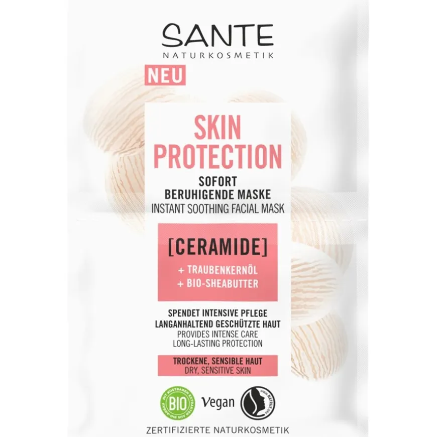 Net als de andere maskers van Sante Naturkosmetik scoort het Skin Protection Instant Soothing Mask met ceramiden, druivenpitolie & biologische sheaboter hoog met zijn plantaardige kracht van hoge kwaliteit. Druivenpitolie en voedende biologische sheaboter, evenals kostbare amandelolie, kalmeren en worden aangevuld met de bewezen huidverzorgende eigenschappen van ceramiden. Aloë vera-extracten zorgen voor extra vocht. De maskers van Sante Naturkosmetik zijn veganistisch en wreedheidsvrij. Ze bevatten ook geen kunstmatige geurstoffen. De natuurcosmetica-expert gebruikt essentiële oliën van planten. Trakteer je huid nu op een kleine spa met het kalmerende masker!
