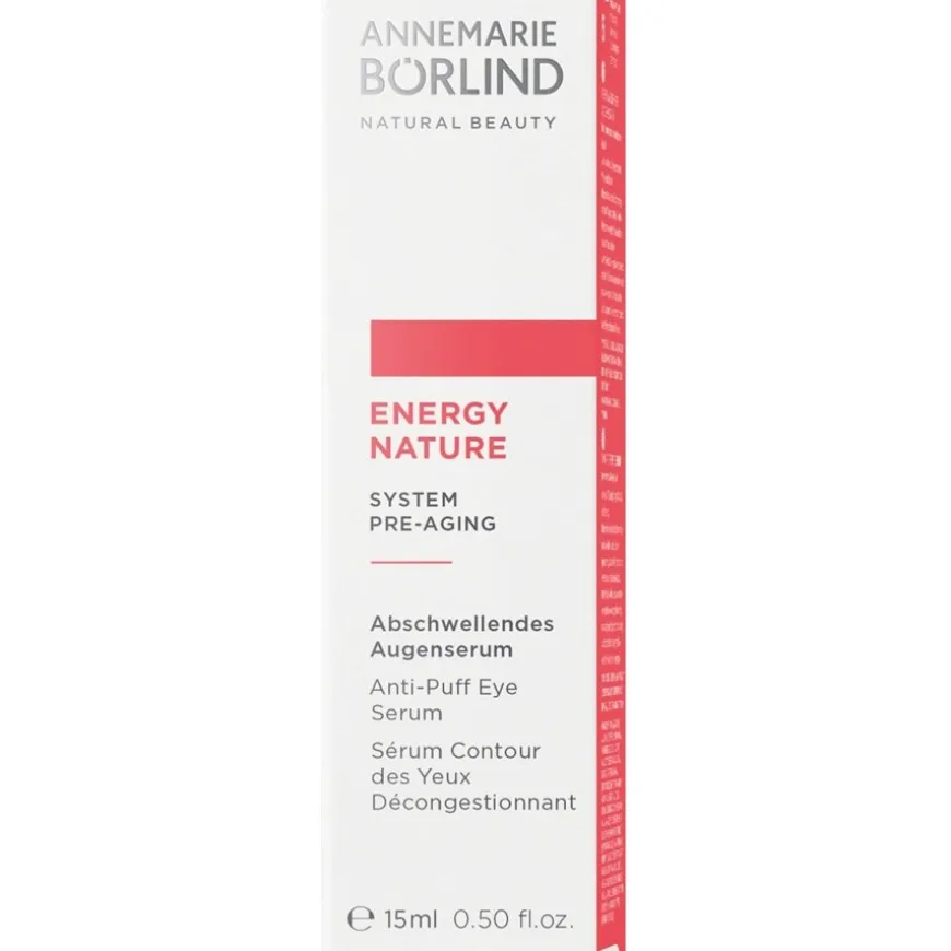 Het ENERGYNATURE decongestivum voor de ogen van ANNEMARIE BÖRLIND verfrist de huid rond de ogen. De lichte formule is speciaal ontwikkeld voor de behoeften van de tere huid rond de ogen. Het combineert ingrediënten zoals biologische cafeïne en hesperidine uit bittere sinaasappel, die wallen en donkere schaduwen kunnen verminderen. Het serum bevat ook hyaluronzuur en jojoba-olie, die de huid gladder en gevoed maken. Fijne gouden pigmenten helpen de oogcontour optisch te verhelderen. Het serum maakt deel uit van de Pre-Aging verzorgingslijn, die tot doel heeft de huid te beschermen tegen de eerste tekenen van veroudering en haar vitaliteit te behouden. Bij regelmatig gebruik voelt de oogzone gerevitaliseerd en verfrist aan.