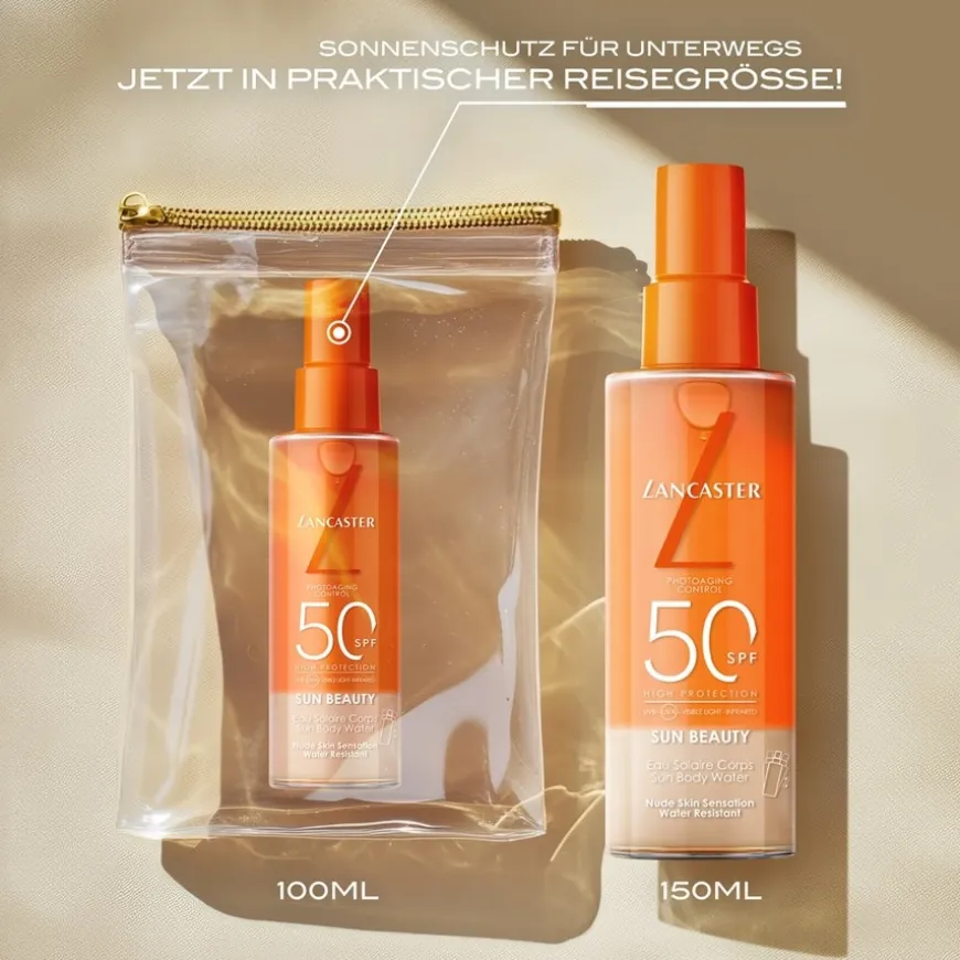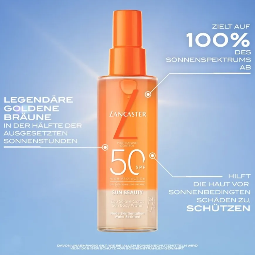 Lancaster introduceert Sun Beauty Sun Body Water SPF50, een van de sterkste middelen tegen door licht veroorzaakte huidveroudering. Het ultralichte product maakt indruk met zijn gemakkelijke toepassing en ongeëvenaarde, zorgeloze huidgevoel. Dit is zonverzorging in het topsegment, zoals je zonbescherming wilt hebben.