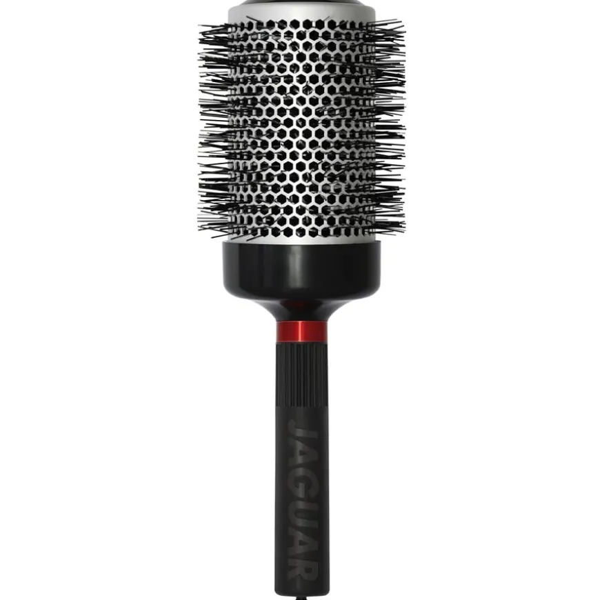 De Jaguar T 390 ronde borstel is gemaakt van een materiaal dat verrijkt is met natuurlijke stoffen. Deze natuurlijke stoffen brengen ionen over op het haar tijdens het borstelen. De ionen breken de waterdruppels af in microdruppels, waardoor het water sneller door het haar wordt opgenomen en je haar sneller droogt. De ionen sluiten ook de schubbenlaag en zorgen voor gladder, zachter haar. De gladdere haarbasis zorgt er op zijn beurt voor dat je haar het licht beter reflecteert en er niet alleen perfect verzorgd uitziet, maar ook helderder en gezonder is. Daarnaast wordt het haar gehydrateerd tijdens het borstelen en worden statische en weerbarstige haren op betrouwbare wijze voorkomen.
