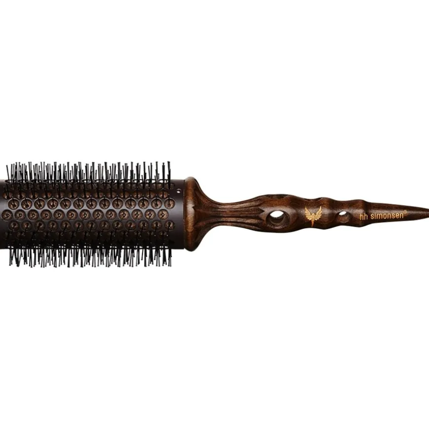 De Turn Brush Flex – XL voor extra grote en gladde krullen bevat echte everzwijnenharen. Deze verdelen de natuurlijke haaroliën zachtjes en zorgen ervoor dat je haar prachtig glanst. Speciale aandacht is besteed aan het houten handvat. Zorgvuldig vervaardigd met gedraaid hout, biedt het je haar een luxe stylingervaring. HH Simonsen heeft het handvat van The Turn Brush Flex – XL bewust ontworpen met een punt. Je kunt op deze manier ontworpen kammen en borstels gebruiken om je haar naar wens te verdelen. Tegelijkertijd heeft het handvat van de HH Simonsen borstel een hoog warmteabsorberend vermogen.