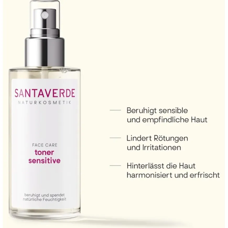 De Aloë Vera Toner Sensitive van Santaverde hydrateert, balanceert en herstelt de huid. Het versterkt de huideigen krachten en ondersteunt de regeneratie. De huid wordt gekalmeerd, versterkt en gerevitaliseerd. Dit huidverzorgingsproduct is bijzonder geschikt voor de droge, gevoelige en veeleisende huid. Verstuif de fijne nevel ’s ochtends en ’s avonds op gezicht, hals en decolleté. Tijdens het reizen en op warme dagen zorgt de toner er ook voor dat je huid tussen het gebruik door fris en gerevitaliseerd aanvoelt.