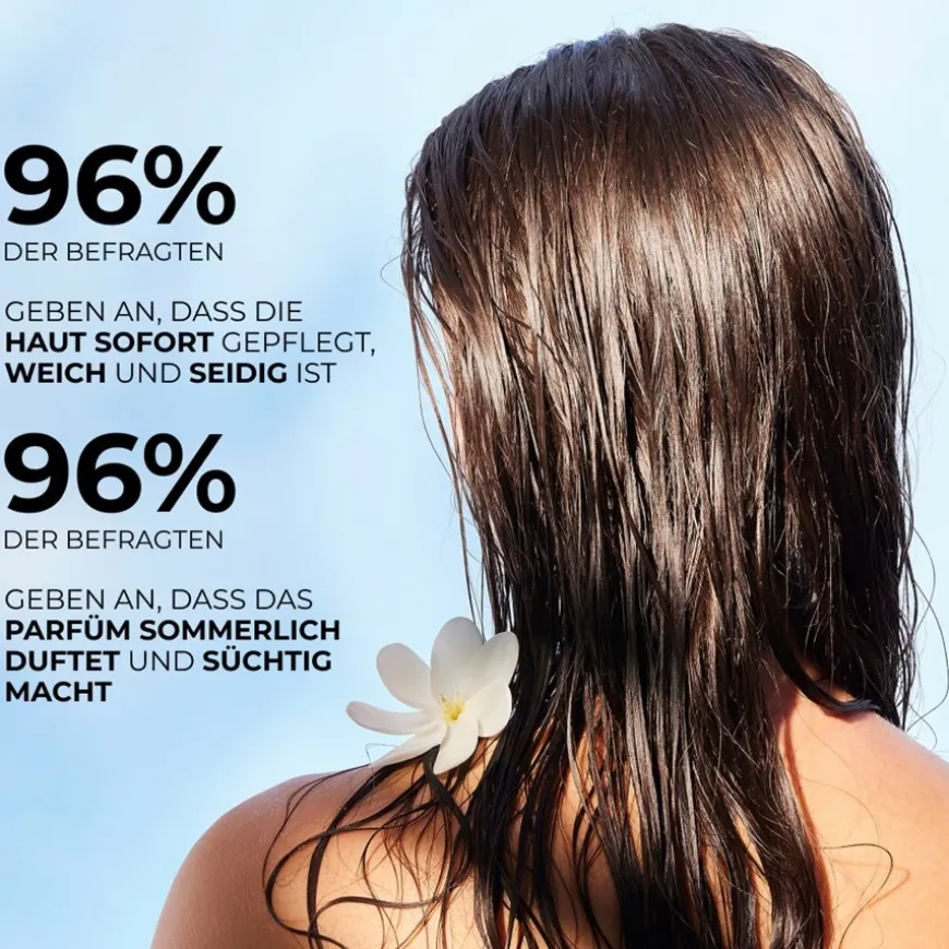 Onze olie, samengesteld uit 97% ingrediënten van natuurlijke oorsprong, waaronder 97,5% pure Monoï de Tahiti, voedt de huid en omhult haar met een verslavende zongeur. De huid is onmiddellijk gehydrateerd.