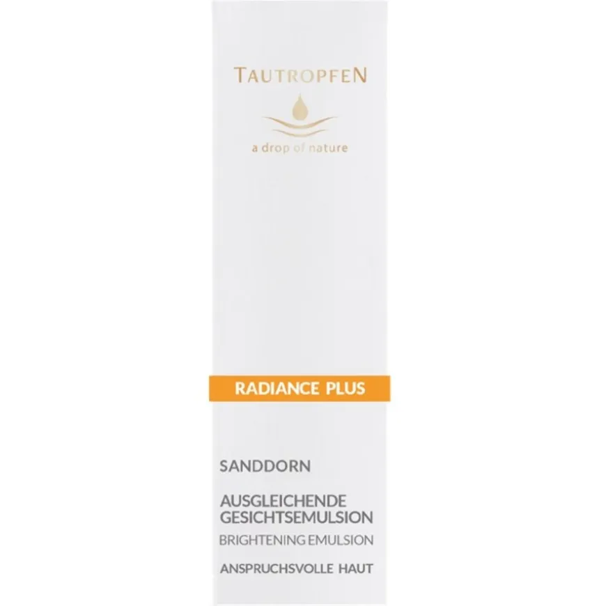De Radiance Plus gezichtsemulsie bevat zorgvuldig geselecteerde plantaardige extracten van druif, wilde aardbei en duindoorn. Deze zijn bijzonder rijk aan vitaminen die vrije radicalen neutraliseren en vroegtijdige huidveroudering tegengaan. De plantenextracten kunnen bij regelmatig gebruik ook effectief zijn tegen pigmentvlekken. Het hyaluronzuur dat het ook bevat, bindt grote hoeveelheden vocht en zorgt zo voor optimale hydratatie. Tip: Gebruik de Balancing Facial Emulsion in combinatie met de TAUTROPFEN Gezichtsverzorgingsolie om de huid optimaal te verzorgen. Breng eerst de gezichtsverzorgingsolie aan en daarna de gezichtsemulsie.
