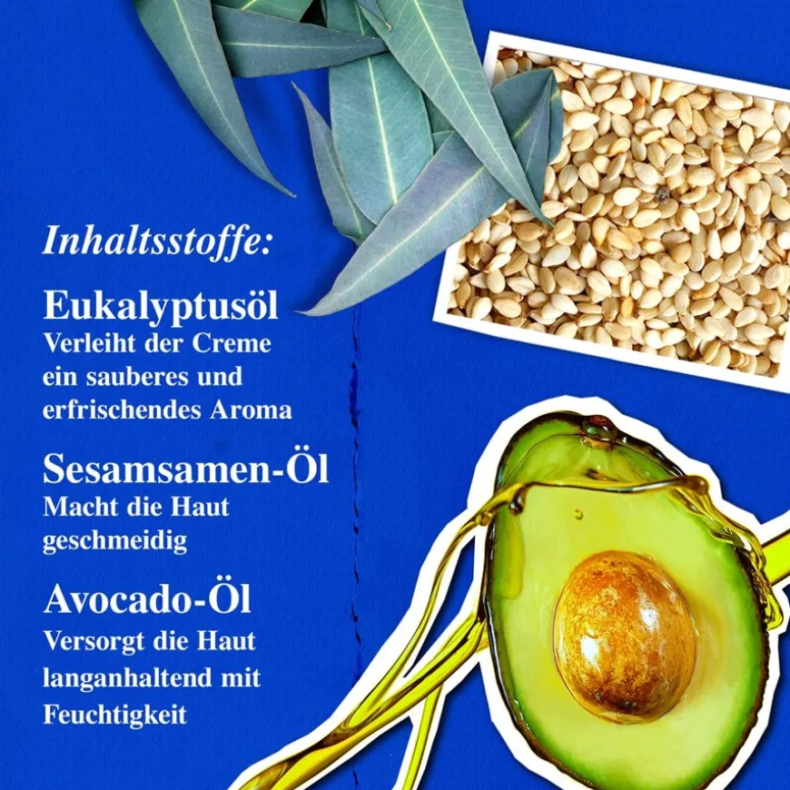 - Met avocado-olie, sesamolie en een was op basis van olijfolie