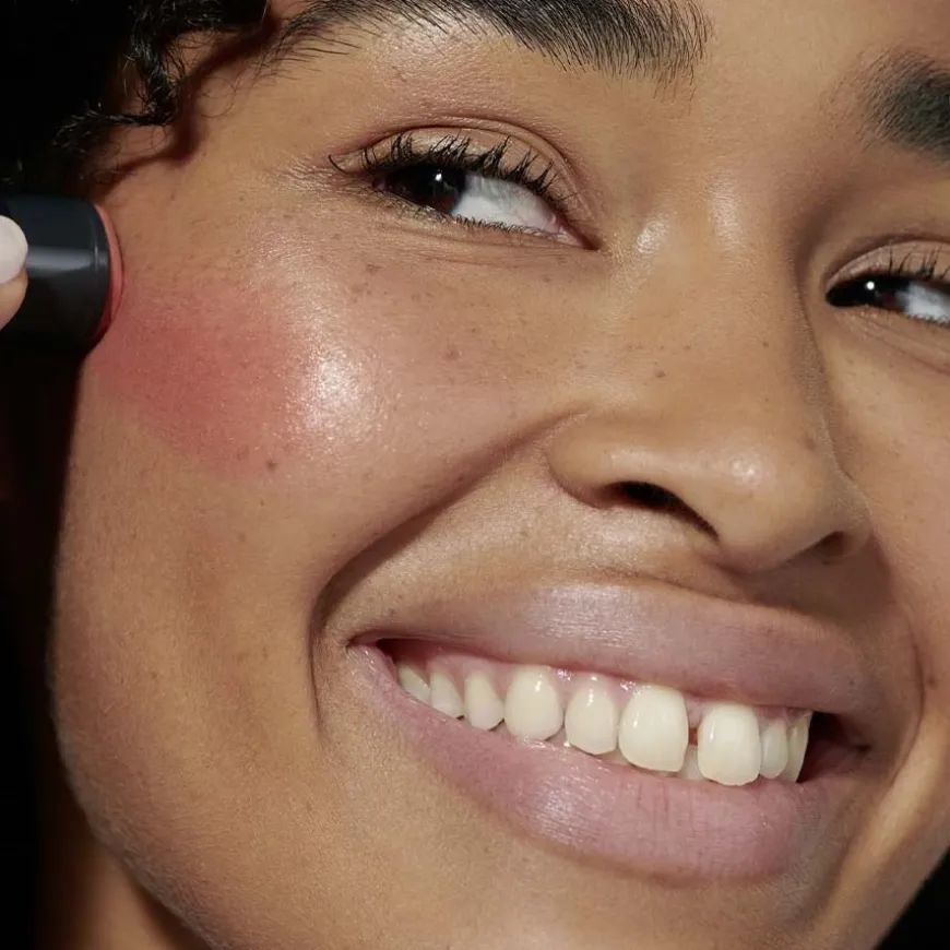 Voor een intensere look breng je de stick aan als een glinsterende finish over foundation of poeder en blend je het geheel. Breng make-up aan op de lippen met de stick, je vingers of een penseel.