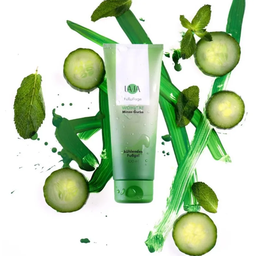 1. Breng telkens een hoeveelheid “Wohltat” verkoelende voetgel ter grootte van een kersenpit aan op de voet.