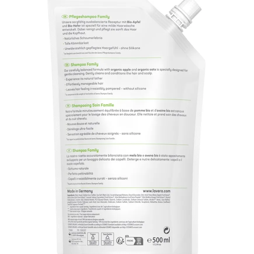 Lavera shampoo is getest en gecertificeerd volgens de strenge criteria van PETA. Dit betekent: vrij van dierlijke ingrediënten en natuurlijk dierproeven. Dus zelfs veganisten kunnen de fruitige Family care shampoo met plezier gebruiken. Naast appel en haver bevat het ook zonnebloemolie, aloë vera, komkommer en druif. De haarverzorging biedt een onmiddellijk effect: geweldige doorkambaarheid, vooral voor kleintjes en lang haar. Na het drogen voelt het haar geweldig aan zonder het gebruik van siliconen. Probeer het nu!