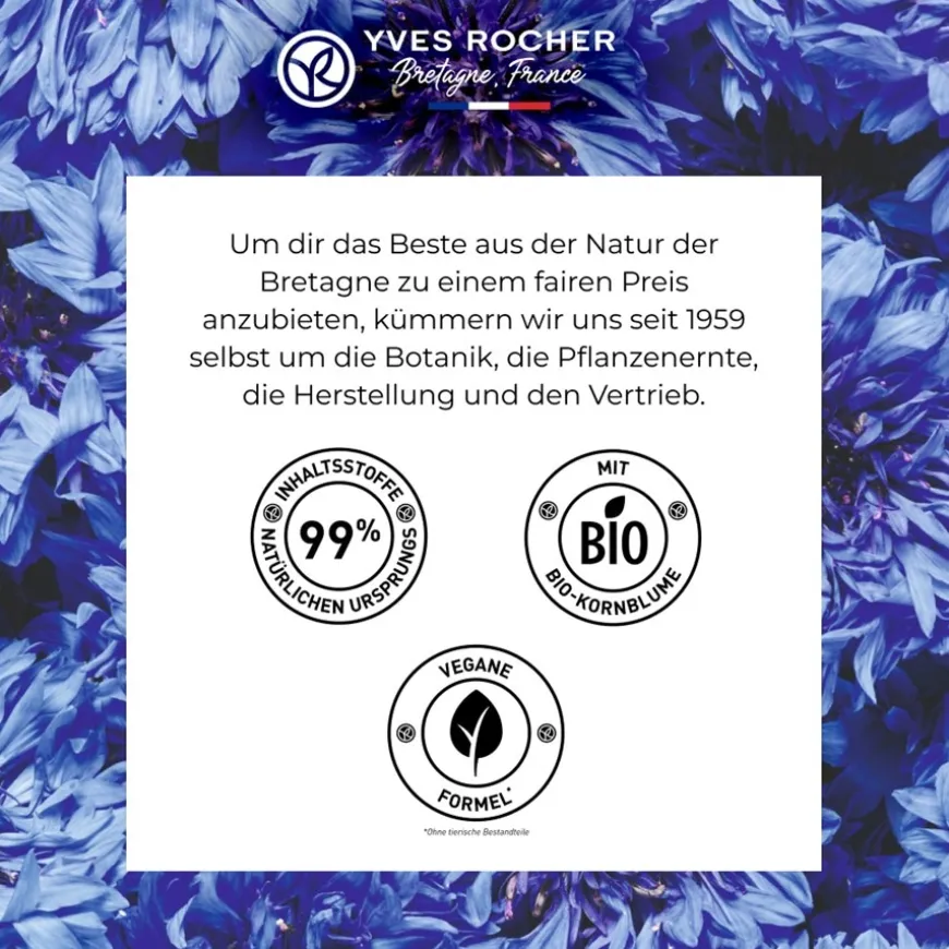 De formule verrijkt met koornbloemextract bevat nu tot 99% ingrediënten van natuurlijke oorsprong* en is ook geschikt voor gevoelige ogen en dragers van contactlenzen.