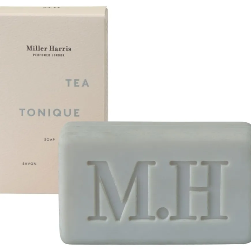 De Tea Tonique zeep wordt kort onder water opgeschuimd en omhult de handen met verzachtende verzorging. Kokos- en koolzaadolie brengen het natuurlijke oliegehalte van de huid in balans. De zeep bevat ook hoogwaardige biologische sheaboter, verkregen uit de noten van de tropische sheaboom. De rijke ingrediënten geven sheaboter hydraterende en voedende eigenschappen. Vitamine E, een krachtige antioxidant, beschermt de huid tegen vrije radicalen en verbetert het vermogen van de huid om vocht vast te houden. Dankzij de wateraantrekkende eigenschappen helpt glycerine ook om de huid betrouwbaar te hydrateren. Zelfs bij veelvuldig handen wassen droogt Miller Harris Soap de huid niet uit.